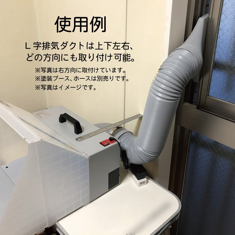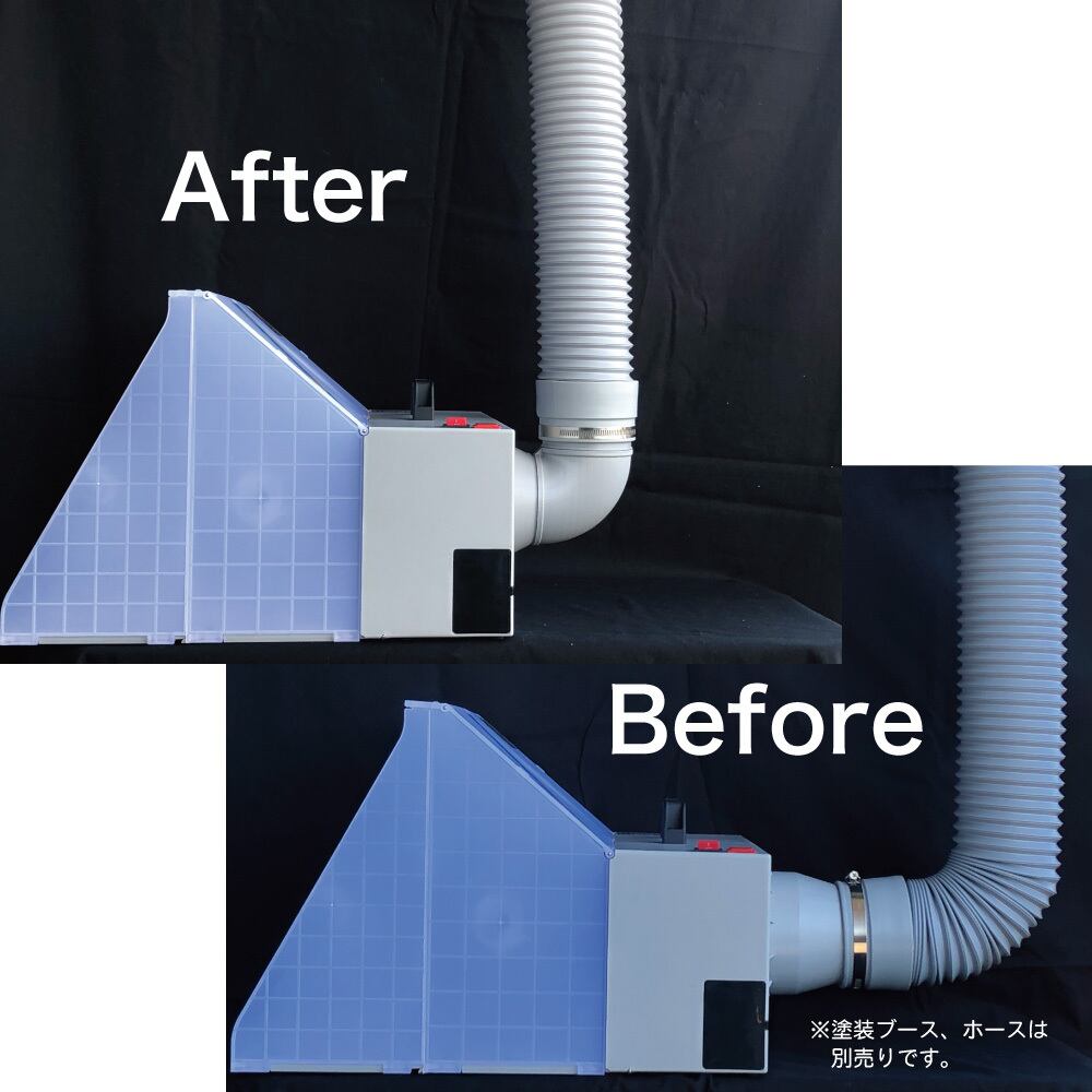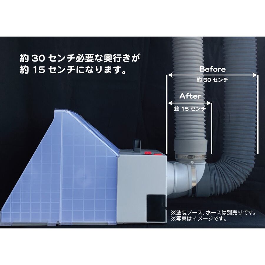 奥行きを取りる塗装ブースをに使える、奥行きを有効活用するエルボダクトです。